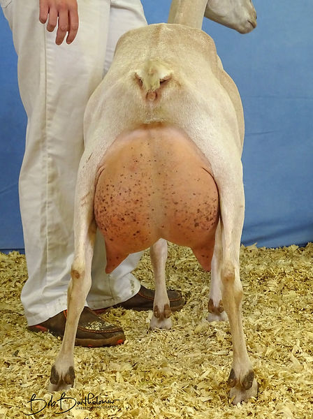 This is a two-year-old Lamancha doe with a stunning mammary and openness through the hocks. She will kid in middle to late March.